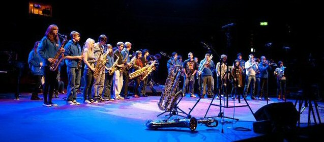 Students of Jazz Machine played in the ‘open rehearsal’ of the orchestra alongside their mentors: Dennis Rollins MBE, Andrew Wood, David Chambers and Ashley Squires.